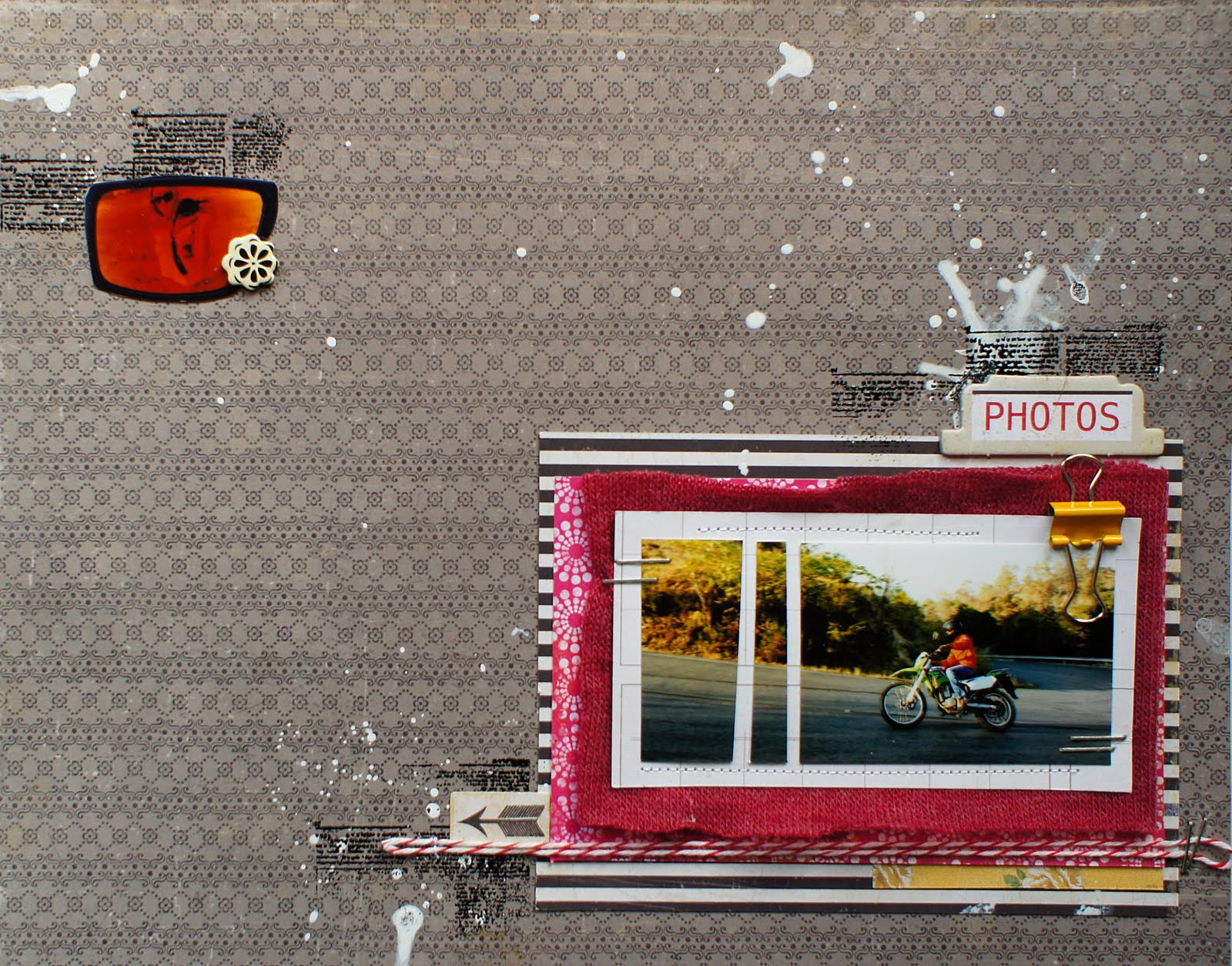 Материалы: основа странички - бумага для скрапбукинга размером 25х25,тетрадный лист в клеточку, кусочки зеленой в полоску скрапбумаги из набора 15х15, коричнево- зеленые полосатые бумажные ленты над фото и вокруг него вырезаны из рекламных буклетов, журналинг - вырезан из скрапбумаги 30х30, скрепки, розовые и голубые нитки, пуговички, штампы питерского клуба "Часы", "Парк",черная гелевая ручка, черные, синие и бирюзовые кляксы на фоне сделаны акварелью. Работалось с скетчем легко, играючи, даже весело, т.к. он необычайно хорош, а еще моим главным редакторам выступала сама "модель" с фотографии))